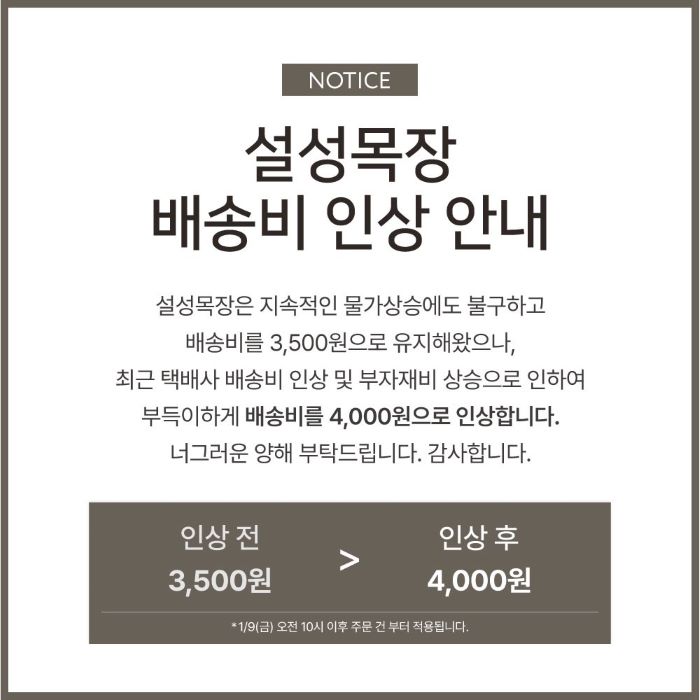 | 5만 원 미만 주문 시 | 배송비 3,500원 |